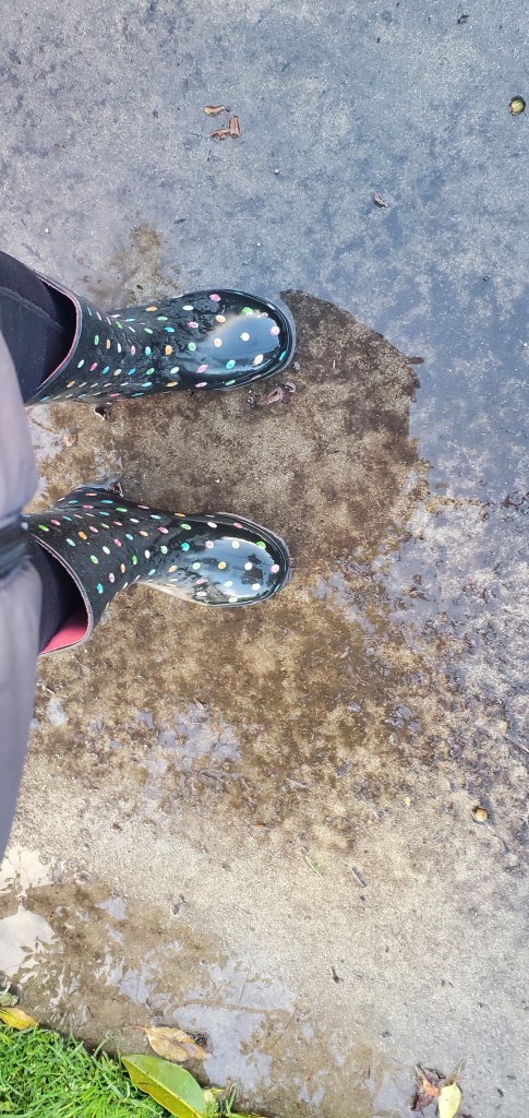 These days in the rain I walk in the puddles and have lots of joy when I do it. I am not worried about getting my socks wet when the dog keeps looking for a spot on the wet grass to do her business and when we walk on the sidewalk I don’t shy away from those rainy muddy water puddles.
